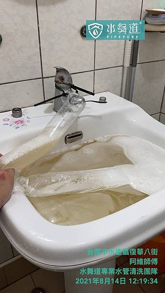 P.S.清洗水管過程全程攝影錄影,屋主必須全程陪同,確保施工品質,我們也按照程序、步驟、要領施作,清到變成水透明無色才會換下一個水龍頭。