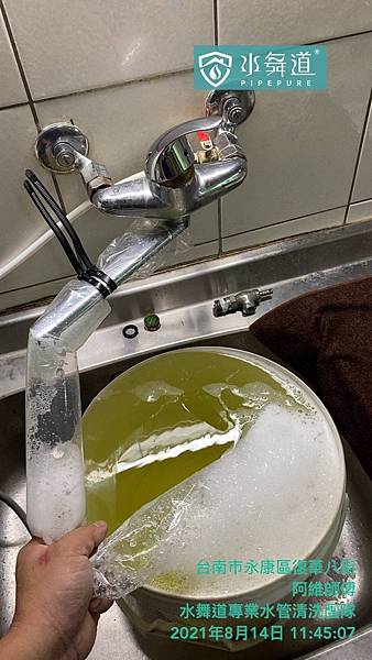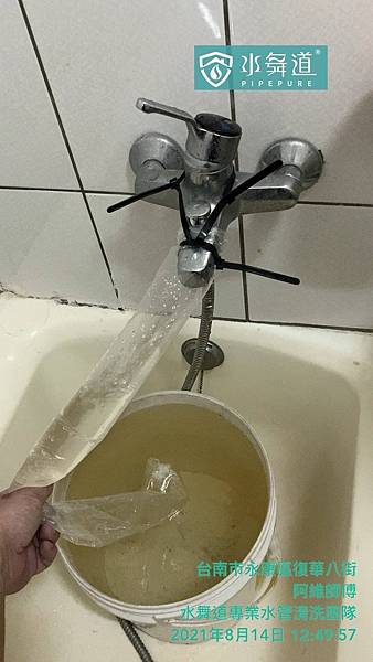 週波清洗水管時,冷水部分排出生物膜較多,熱水管為鏽水、鐵屑居多,如屋主期待的清洗結果,水管使用年久,保養清洗水管,以確保用水衛生。