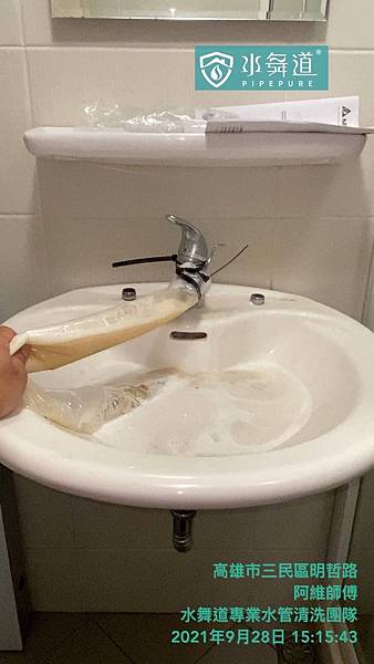 P.S.清洗水管過程全程攝影錄影,屋主必須全程陪同,確保施工品質,我們也按照程序、步驟、要領施作,清到變成水透明無色才會換下一個水龍頭。