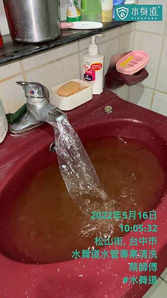 P.S.清洗水管過程全程攝影錄影,屋主必須全程陪同,確保施工品質,我們也按照程序、步驟、要領施作,清到變成水透明無色才會換下一個水龍頭。