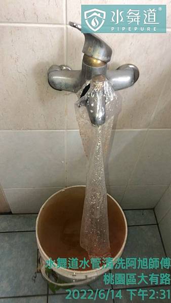 P.S.清洗水管過程全程攝影錄影,屋主必須全程陪同,確保施工品質,我們也按照程序、步驟、要領施作,清到變成水透明無色才會換下一個水龍頭。