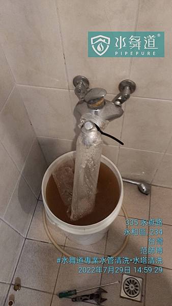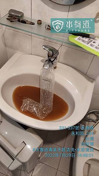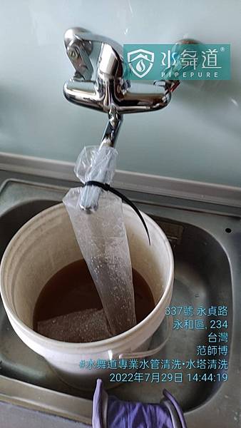 P.S.清洗水管過程全程攝影錄影,屋主必須全程陪同,確保施工品質,我們也按照程序、步驟、要領施作,清到變成水透明無色才會換下一個水龍頭。