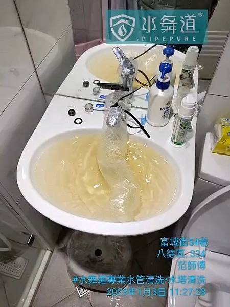 P.S.清洗水管過程全程攝影錄影,屋主必須全程陪同,確保施工品質,我們也按照程序、步驟、要領施作,清到變成水透明無色才會換下一個水龍頭。