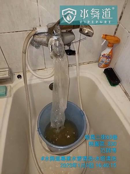 桃園26年大樓水管清洗:桃園區 龍鳳三街,1廚房2衛浴,水壓1.6公斤。