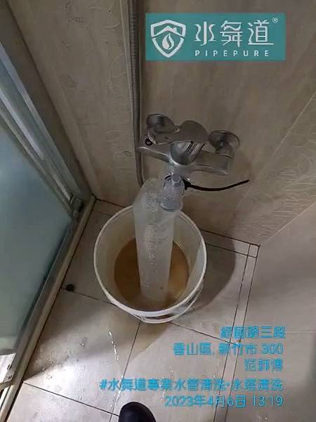 業主表示客衛的淋浴很少用,要用的時候才發現出水量變小,已經請水電師傅檢查過了,水龍頭五金都沒有問題,確定是塞在牆內,堵塞時間點不明,超過一個月恐怕不樂觀,大部分都與水垢形成鏽塊,客衛熱水管,脈衝洗出大量鐵屑,清洗後熱水出水量有改善,鏽得有點嚴重,應該能維持一年吧!
