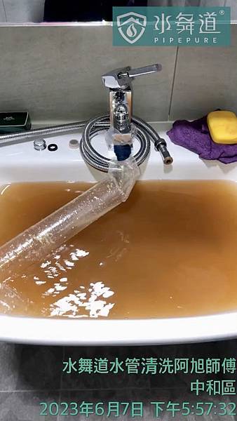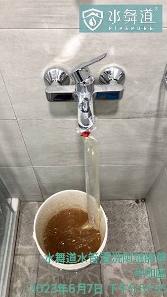 才裝潢好而已,業主不能接受配明管,因熱水管老化程度不明,只能清洗水管賭一把了,脈衝洗出大量的鏽水,管內鐵屑太多,才會影響熱水出水量,只要沒有生成鏽瘤,洗水管就一定可以改善。