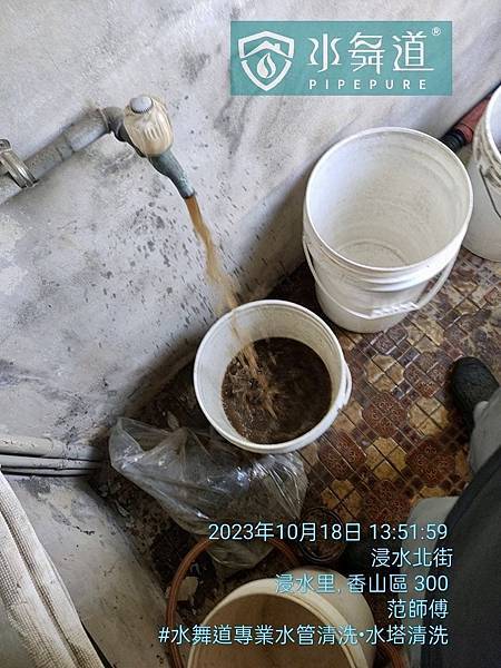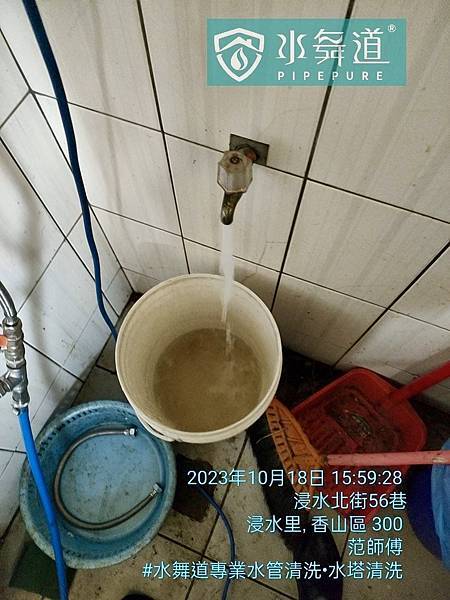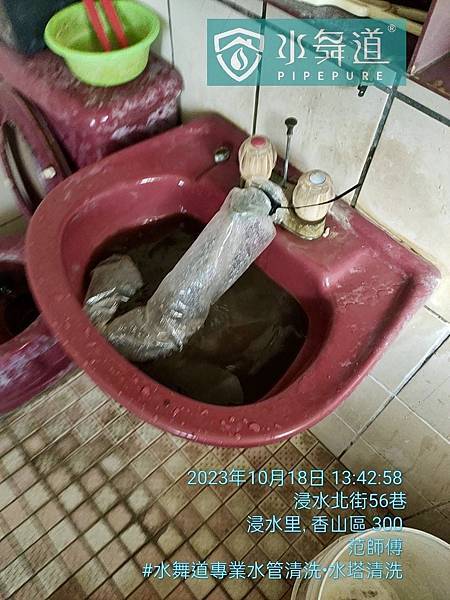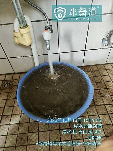 新竹市 香山區 浸水北街 30年透天水管清洗,1廚房3衛浴+1顆白鐵水塔清洗。