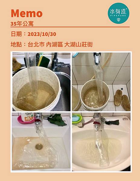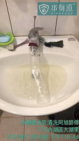 P.S.清洗水管過程全程攝影錄影,屋主必須全程陪同,確保施工品質,我們也按照程序、步驟、要領施作,清到變成水透明無色才會換下一個水龍頭。