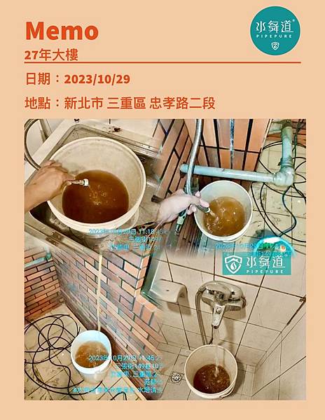 新北市 三重區 忠孝路二段 27年大樓水管清洗,1廚房2衛浴。
