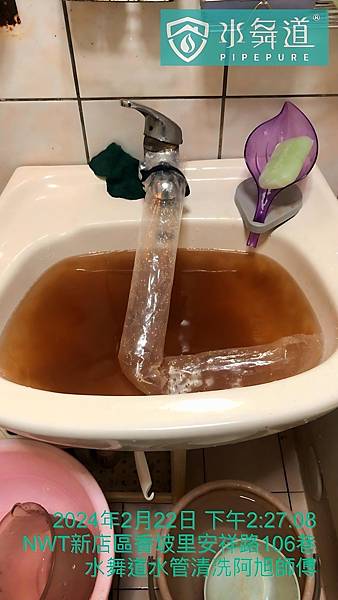 P.S.清洗水管過程全程攝影錄影,屋主必須全程陪同,確保施工品質,我們也按照程序、步驟、要領施作,清到變成水透明無色才會換下一個水龍頭。